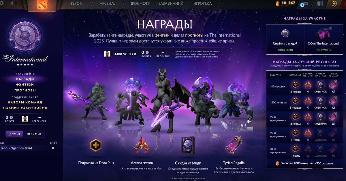 The International 2025 का कंपेंडियम 20 अगस्त की रात को जारी किया गया था। इसी के साथ, खेल में टीमों, कमेंटेटरों और विश्लेषकों के समर्थन के लिए विशेष बंडल भी पेश किए गए हैं। इन बंडलों की बिक्री से प्राप्त आय का 30% सीधे टूर्नामेंट के पुरस्कार पूल में योगदान करेगा।